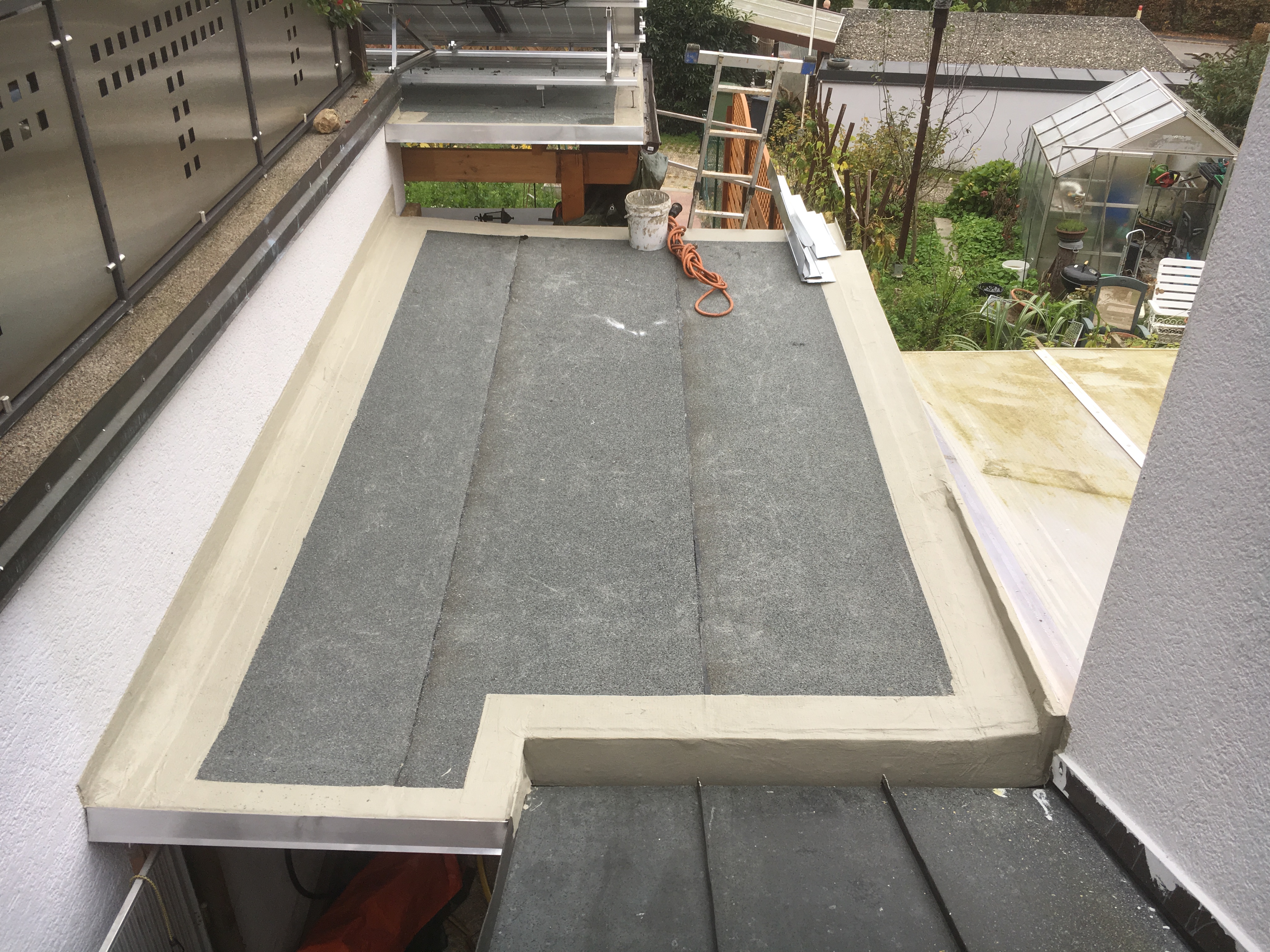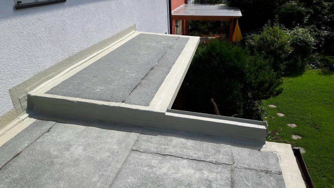 • eindichten der Dachabläufe mit Flüssigkunststoff
